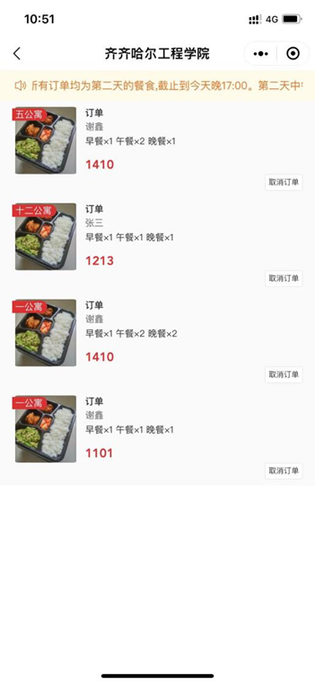 团队由计科201班谢鑫作为负责人带领计科192班张金贺、计科201班臧虎林和计科204班王子轩四名工程师仅用2天时间应急开发了齐齐哈尔工程学院线上订餐平台,以各公寓为基准面对各个食堂档口开展互联,同时保证时间准确订量准确,对学校总务处的配餐工作提高了效率。
