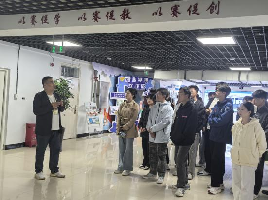 活动伊始,孙文老师带领大家参观科技园二楼双创教育宣传区与成果展示区。从国家级众创空间到创业团队孵化基地,从大创项目立项展示到创新大赛成果墙,他结合案例讲解功能布局与项目落地路径,强调“创业学院是创意转化为现实的全链条服务孵化器”。